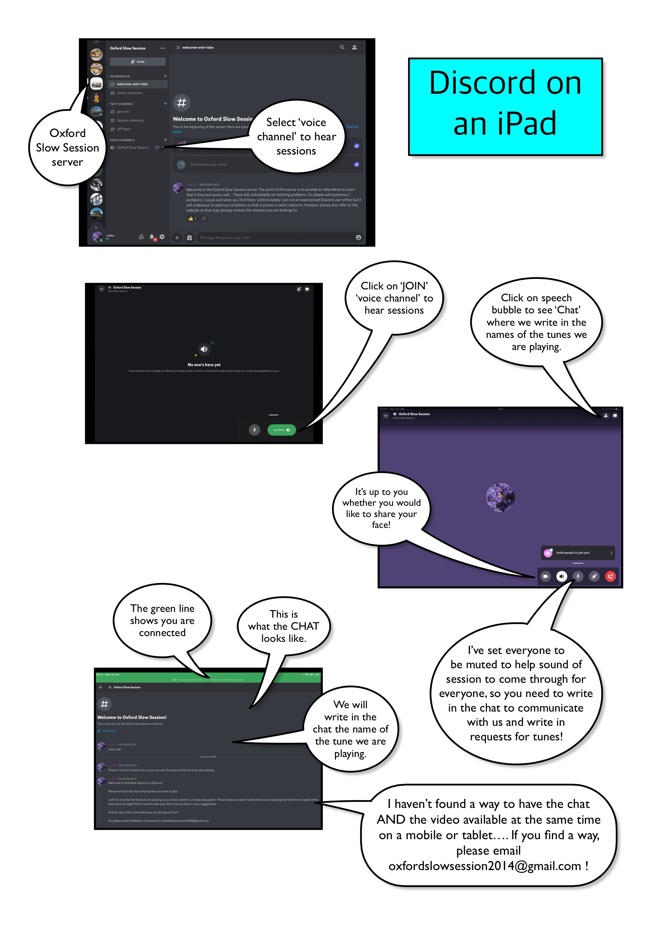 Zoom is more user-friendly (although the sound quality is not great for music)… but expensive… so I’m moving to Discord. Sorry! Hopefully, the sound quality is better (crossed fingers). Please do email me feedback and any suggestions or solutions: oxfordslowsession2014@gmail.com