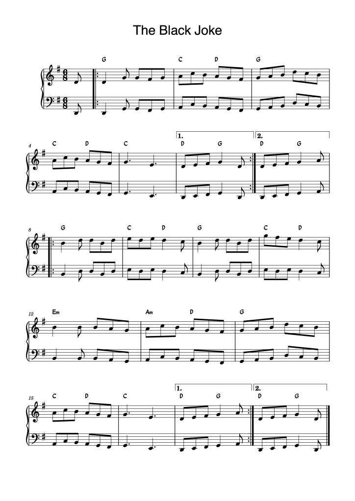 The Scottish version of the tune changed the name to make it less sexual, which tells you something about 18th century attitudes, but the tune is still there. And perhaps there is another joke in the tune, because the B part is four bars longer than the A part, so it can trip you up! The bawdy song was popular, however, and when the Brazilian slaving ship, Henriquetta was captured in 1827, it was renamed HMS Black Joke and spent the next five years chasing and capturing many other slave ships and freeing slaves.