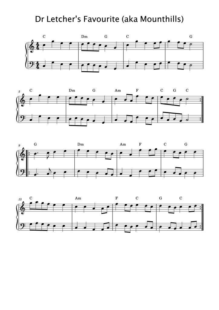 We heard this tune played by Kerfuffle (playing it here at 2:28 mins) and they named it Dr Letcher’s Favourite after having been taught it by Andy Letcher (Telling the Bees), but Jane, who actually taught it to us, says it’s proper name is Mounthills. Anyway, it is a good favourite. Here’s an almost unaccompanied version of Mounthills. And at 2:20 mins, here is Sam Sweeney playing it on his own (and including some variations).