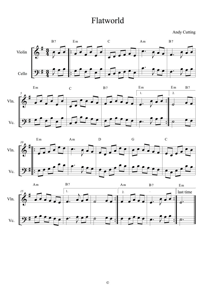 Fortunately, it’s possible to hear Andy Cutting playing Flatworld (after 3.30mins) and also a little slower by another accordionist. There are many recordings on Youtube, so do post links to others that you like… in the meantime, enjoy the dancing to Flatworld in the session as part of the Oxford Folk Weekend filmed by Michael, or this band with mad hats… or perhaps you might find this on on the mandolin useful for learning the tune and similarly on recorders.