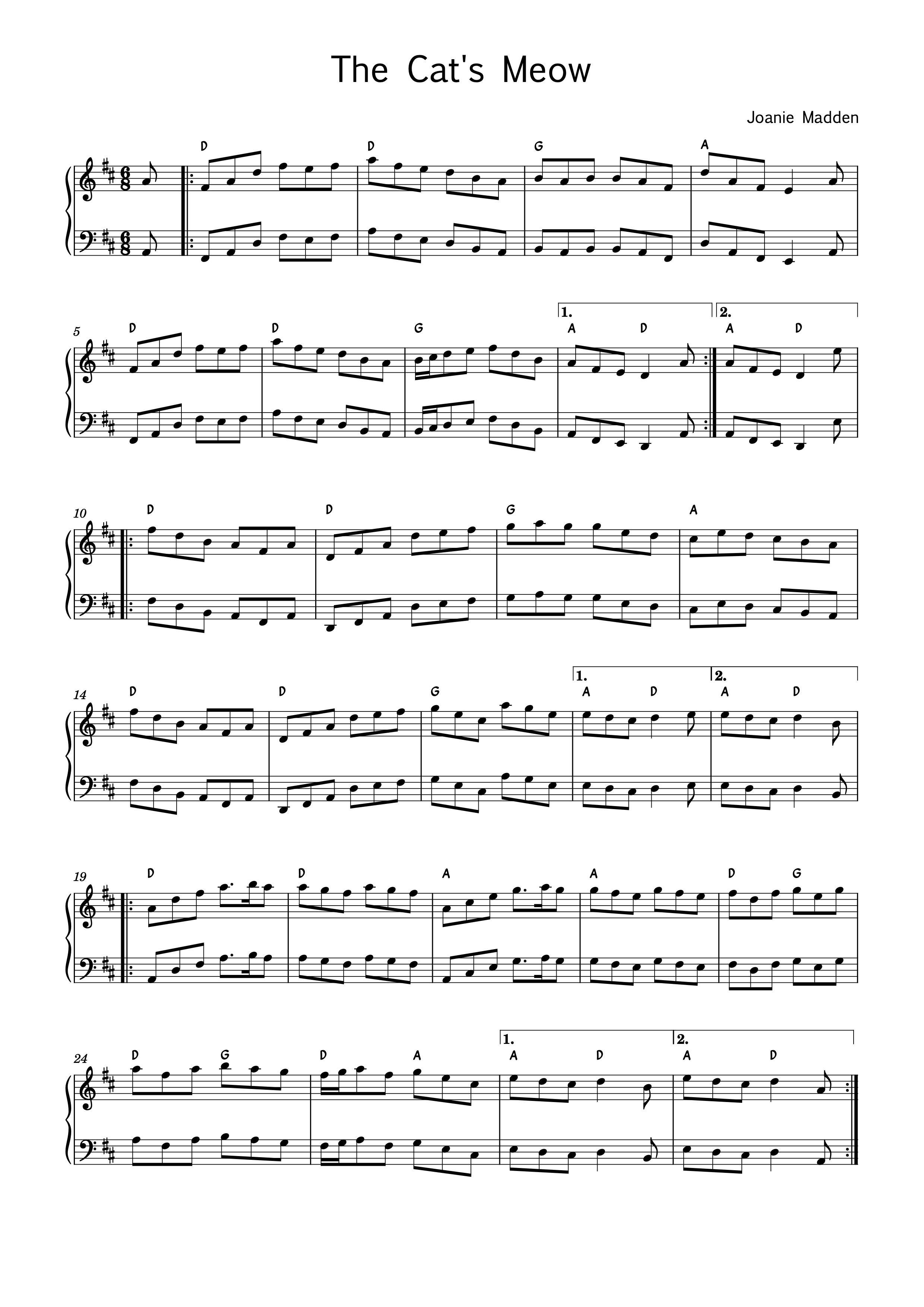 “The Cat’s Meow is the first tune I ever wrote. I was going to Ireland to compete in the Fleadh Cheoil at the All-Ireland Championship and didn’t have a good jig. I was looking for a three-part one. After searching and scouring records and music books for weeks to no avail, I decided to try to write one. I wrote it one night very late sitting at the kitchen table. My father got up to go to work at 4:30 in the morning, and I had just finished it. He asked what tune that was. I said I had just written it. He said ‘What?! Play that again. That’s lovely!’”
