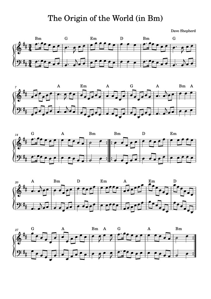 Accordion Peter proposed this lovely tune, and says… “it’s a gorgeous, rather mysterious, looping mazurka by Dave Shepherd of Blowzabella, with a very French/Balfolk feel to it. The long descending arpeggios are really beautiful, as well a complete swine to play (probably very good practice though, humph). It was originally written to be played in Gm (https://youtu.be/YYsnbonolUE), a key which is completely unplayable on a D/G box, so I think most English box players transpose it to Am or Bm (here’s Paul Young doing it in Bm: https://youtu.be/HBX8Jx6tMOM). Hearing the great Andy Cutting playing this tune a couple of years ago was one of my reasons for wanting to learn the box in the first place – so just being able to bodge my way through it feels like a big milestone! Here’s Andy doing it, unmatchably, in Gm on – I think – a C/F box (https://youtu.be/78Nex0PCjPc). ”