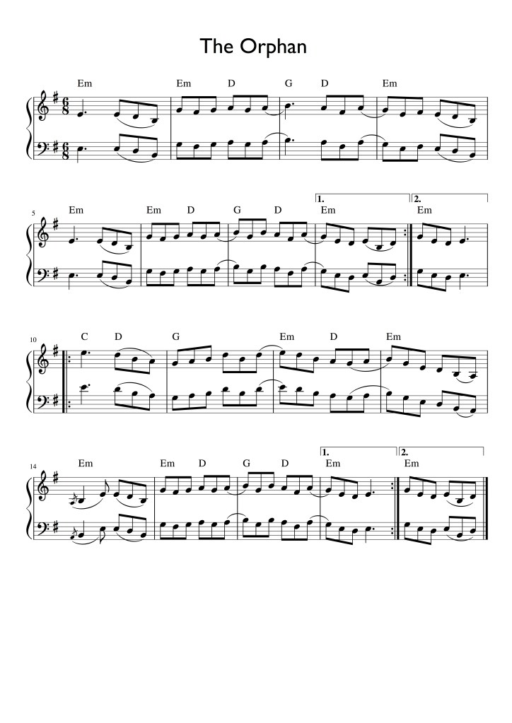 Noah persuaded me to add this tune as it follows nicely from The Night Larry was Stretched. He learned it from the playing by the Martin Hayes Quartet on their album The Blue Room and so we have their version transcribed here, instead of the more well-known version played by Kevin Burke. You can play whichever version you prefer as they don’t differ by much, but I think it is better as unrushed and enjoyed as Martin Hayes illustrates, but listen and see what you think. Martin Hayes has also now done a tutorial for The Orphan (link below).