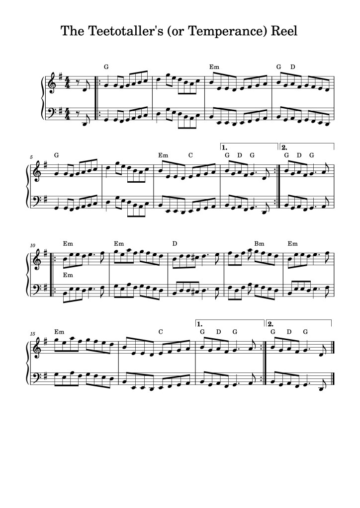 This is one of those tunes that is not too hard (especially if not terribly fast) but sounds great at any speed. Also, it is a good set tune, in that starting on a G, it is easy to go into it from another tune ending on a G. I feel sure it will become a firm favourite… and we can make it the tune of the month for the famously dry January! As ever, there are several variations of this tune around, but they seem to fit ok with each other, so don’t worry if you prefer a different variation. It will add harmony to the room!