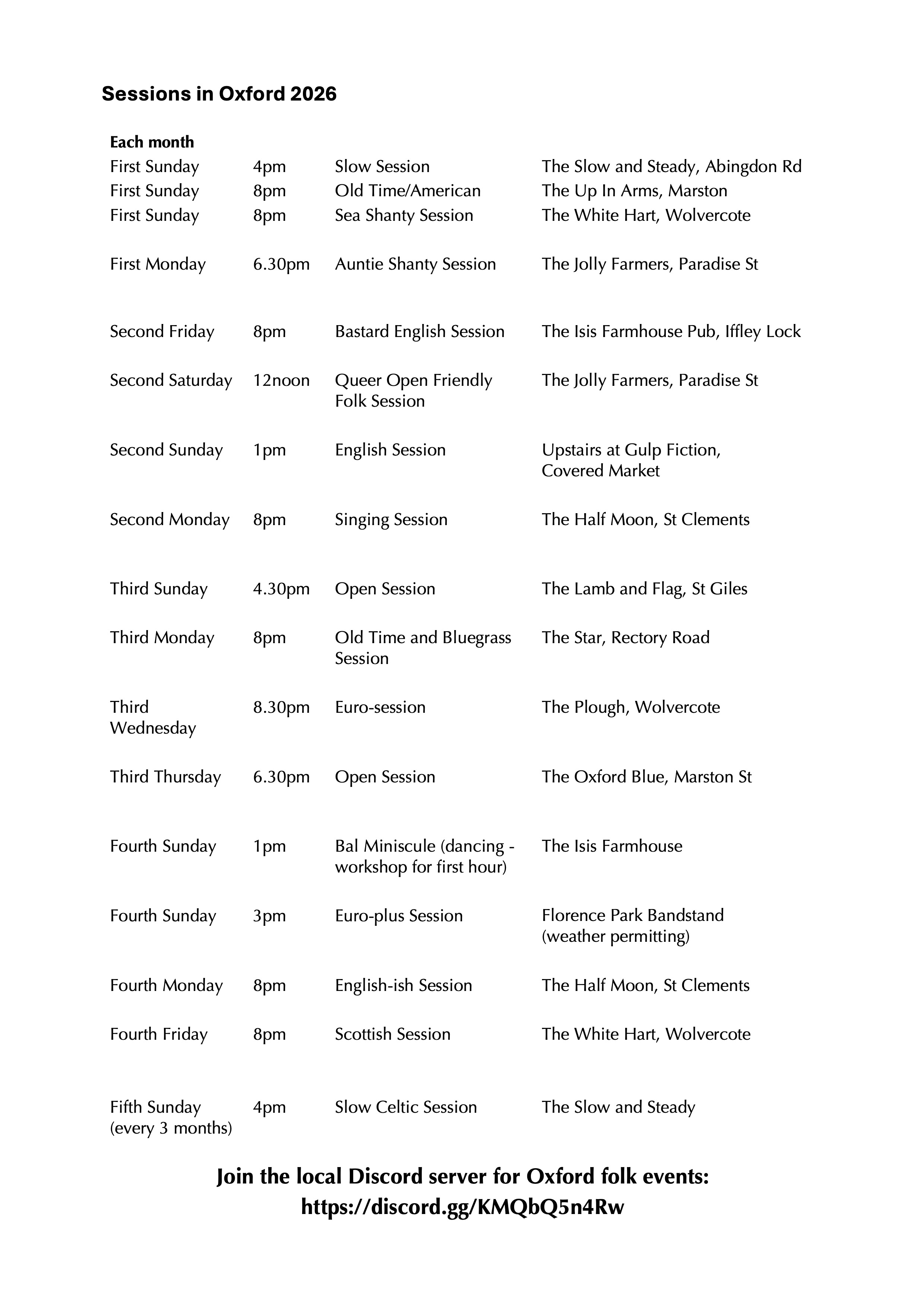 and I hope that we will also have 12th April 2026, 4pm Oxford Slow Session as part of the Oxford Folk Festival